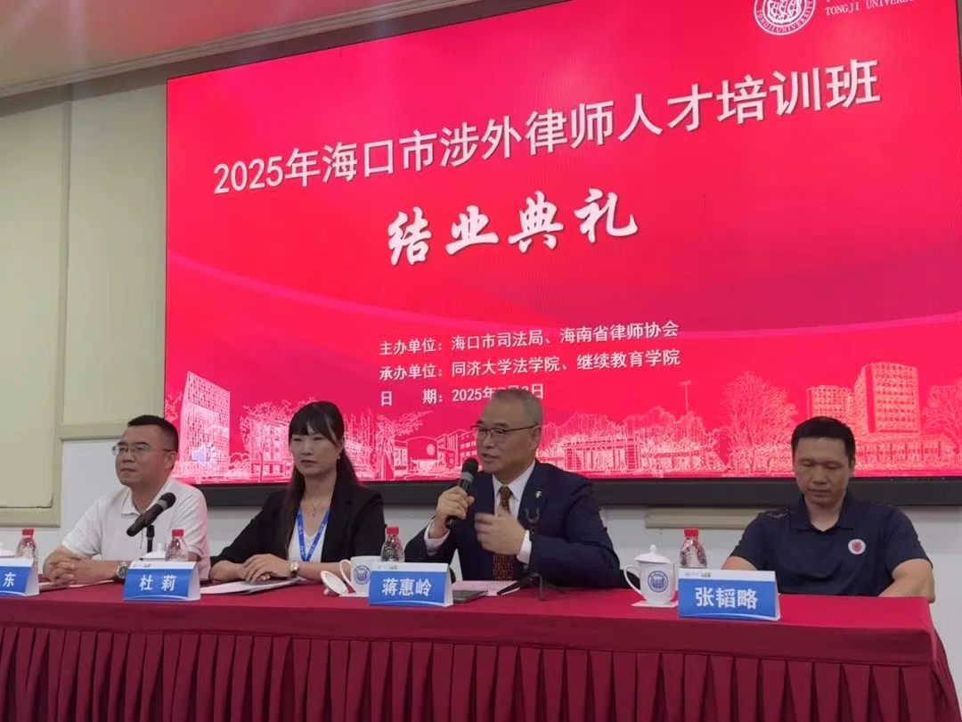 在海南自贸港建设如火如荼的背景下,涉外法律服务的重要性日益凸显。为提升涉外法律服务水平,培养通晓国际法律规则的高素质人才,我所黄文灿主任、王占文律师于2025年6月29日至7月3日参加了由海口市司法局、海南省律师协会、同济大学法学院联合举办的2025年海口市涉外律师人才培训班。此次培训汇聚了众多法学专家与实务精英,为海南律师提供了宝贵的学习与交流机会。