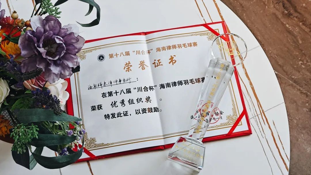瑞来动态 | 我所荣获第十八届“川合杯”海南律师羽毛球赛“优秀组织奖”